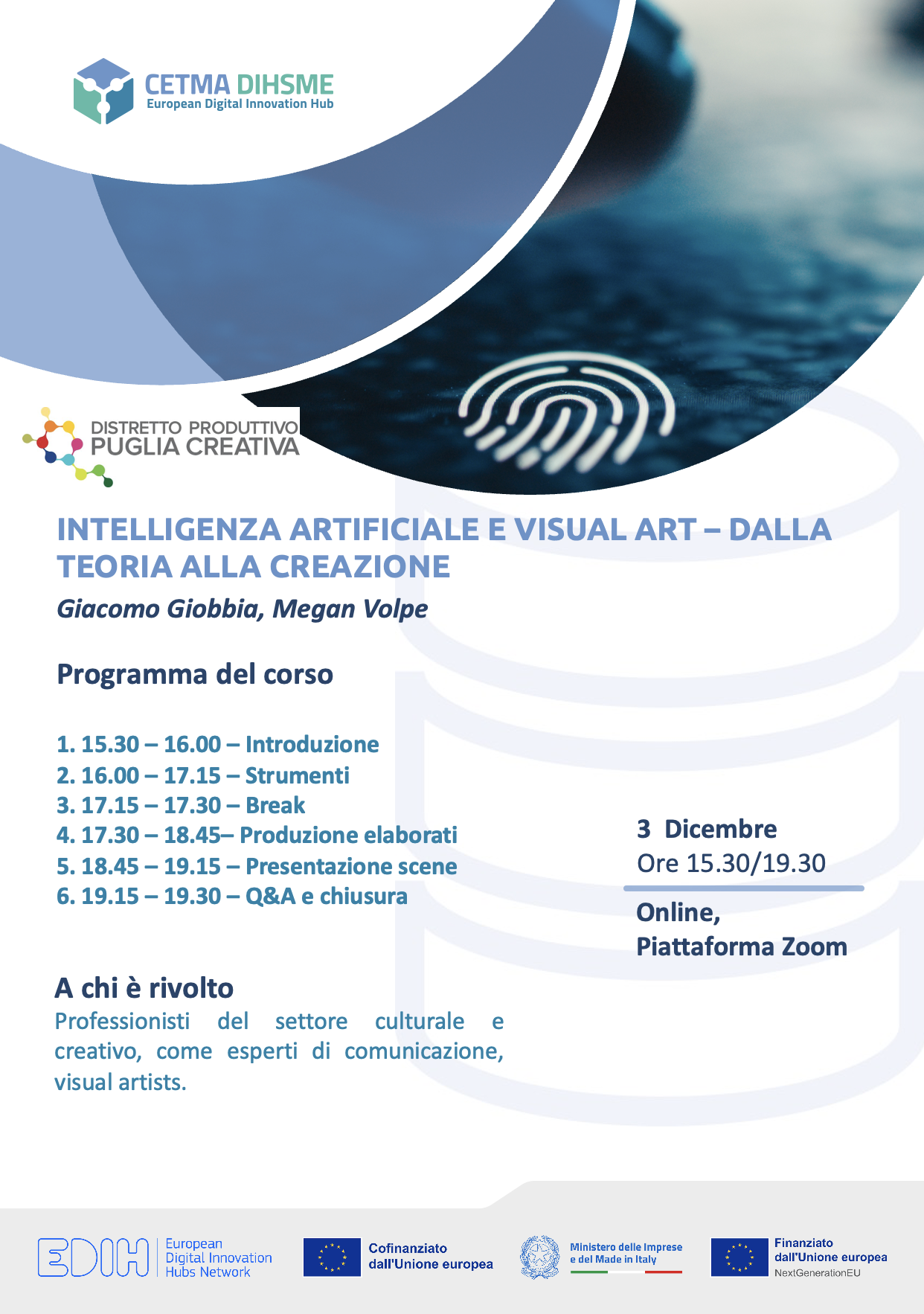 Il corso di formazione è pensato per esplorare a fondo le potenzialità dell’intelligenza artificiale nel settore della visual art. I partecipanti avranno l’opportunità di conoscere e sperimentare applicazioni basate sull’IA, comprendendone il funzionamento e imparando a utilizzarle in modo efficace. Dalla teoria alla sperimentazione, i partecipanti esploreranno strumenti e tecniche per creare immagini, animazioni e scene multimediali con l’AI. Il corso alterna momenti introduttivi su evoluzione, etica e copyright dell’IA a sessioni pratiche di prompting, editing e produzione creativa in gruppo.